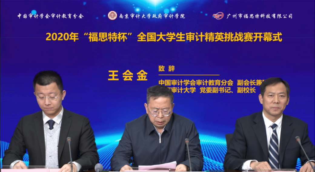 王會金副校長指出創新是本次大賽的一大亮點,與往年的比賽相比,今年的比賽有三大創新之處:一是比賽形式創新,首次全程采用線上模式。二是比賽內容創新,本次大賽首次融入審計國際化內容,采用英文視頻題的形式,全方位考核學生的審計專業技能,旨在選拔具有國際視野和國際競爭力的審計人才,這也是新文科建設的重要目標。同時大賽在往年注冊會計師審計考點的基礎上,加大了內部審計和政府審計的建設內容,是目前國內考核范圍最全的審計專業賽事。三是比賽題型創新。本次大賽首次引入了審計實操題型,即虛擬仿真審計實驗平臺進行審計全流程的實操比拼,并融入了大數據審計技術,開拓專業視野,培養學生的跨領域知識融通能力和實踐能力。對本次大賽的協辦方廣州市福思特科技有限公司在財經類教學軟件開發、教育投資等方面的實力與成就作出了充分的肯定。王會金副會長指出,審計專業的未來發展以及新時代審計人才的培養仍任重道遠,希望通過比賽能讓大家不僅收獲專業知識,更能拓寬專業視野,提升專業素養。