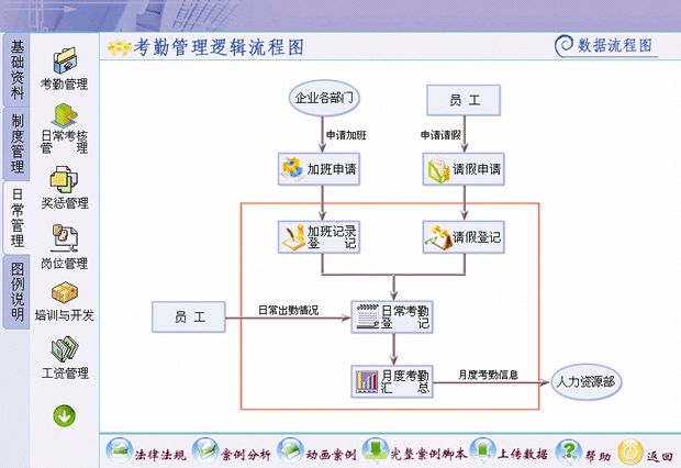 系統融合了現代人力資源管理理念,將人力資源管理工作上升到戰略高度,人力資源管理從傳統的人事管理向戰略性的人力資源管理轉變。本系統將人力資源管理工作分為戰略性的人力資源管理(制度層面)和戰術性的人力資源管理(日常管理層面)。