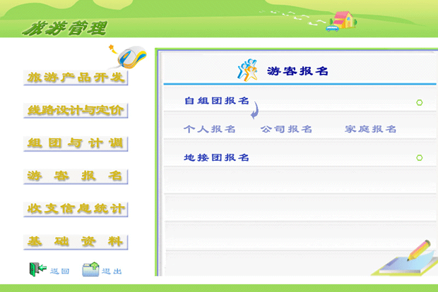 5.前臺處理模塊。前臺處理模塊是服務于自組團的游客報名信息與數據錄入。在這里還提供了查詢團隊信息的功能。